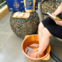 – Bước 3: Pha thêm nước ấm và đợi nước về khoảng 40 độ là có thể ngâm chân.